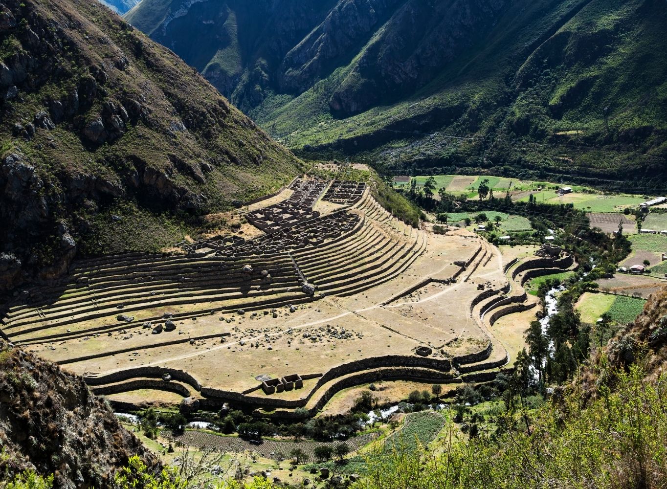 Otaczające ruiny tarasy (andenes) zostały wkomponowane w strome zbocze góry, zabezpieczając grunt przed erozją i umożliwiając uprawę warzyw i zbóż na ograniczonej powierzchni.