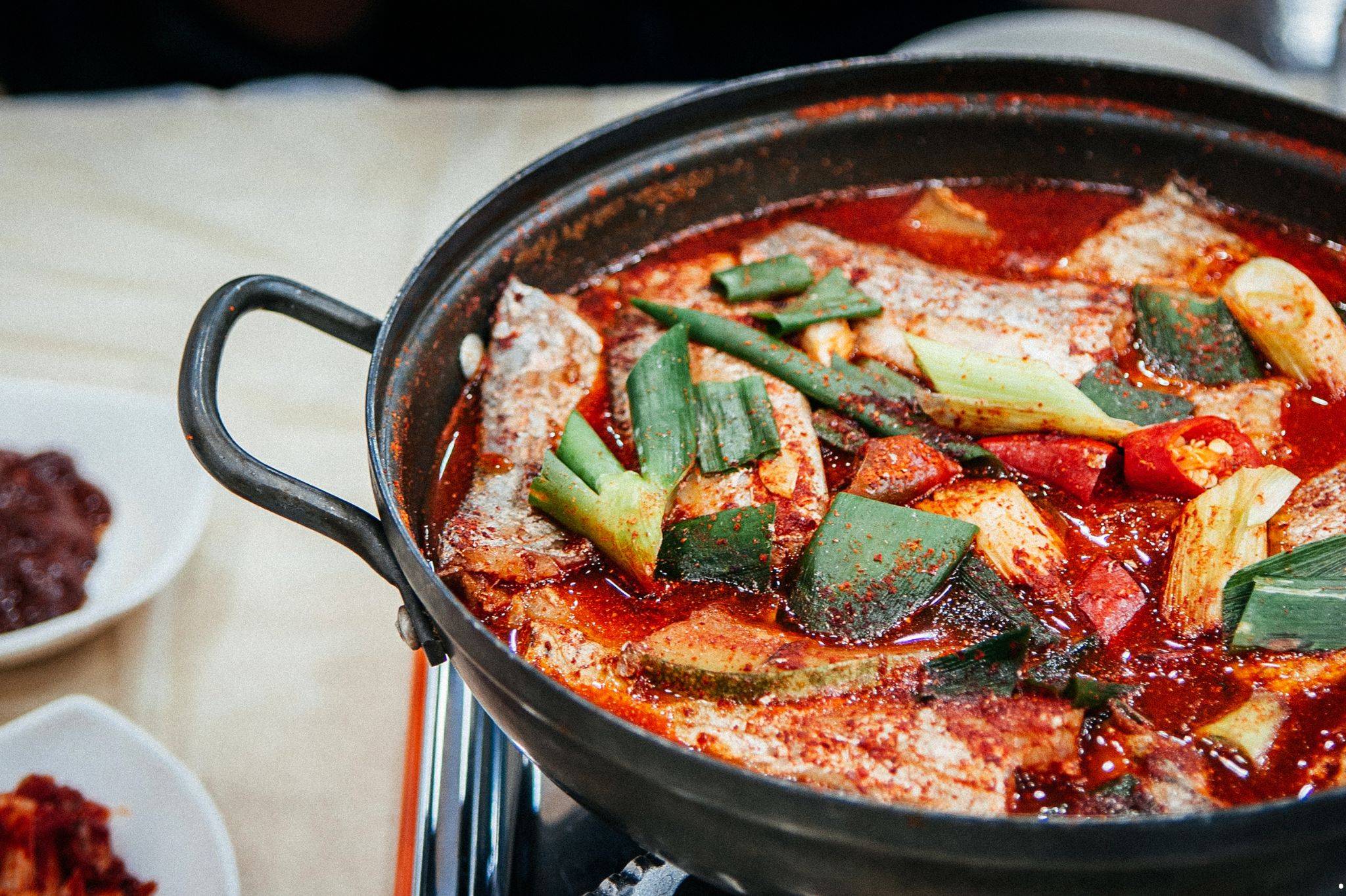 Maeuntang (매운탕) | Ostry gulasz rybny z warzywami i przyprawami — danie na rozgrzanie. |