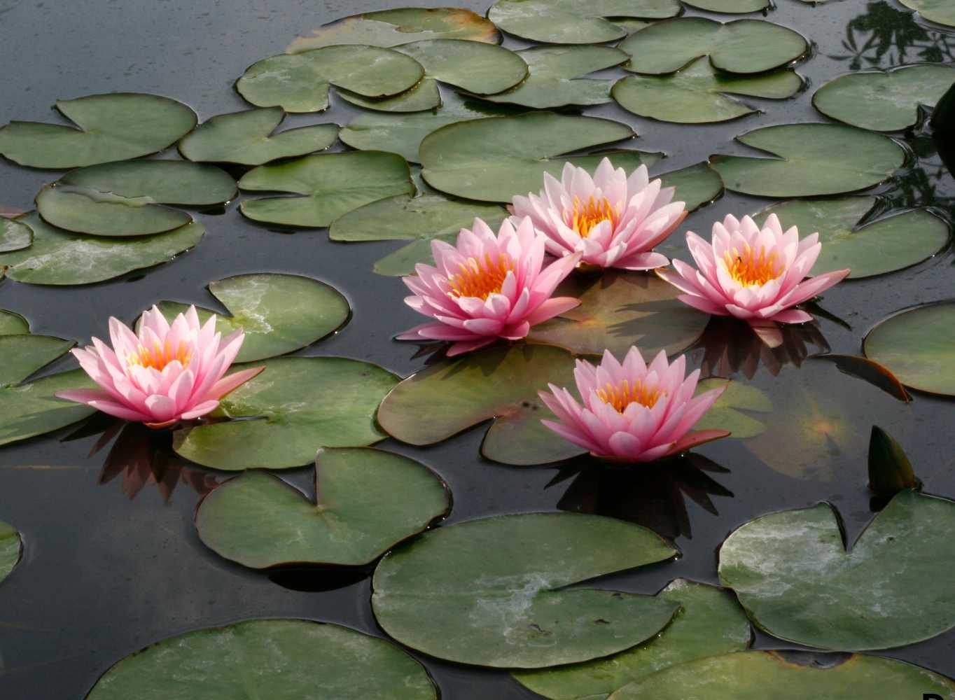 • duże okrągłe liście, które mogą mieć do ok. 60 cm średnicy, często sterczą nad wodą.