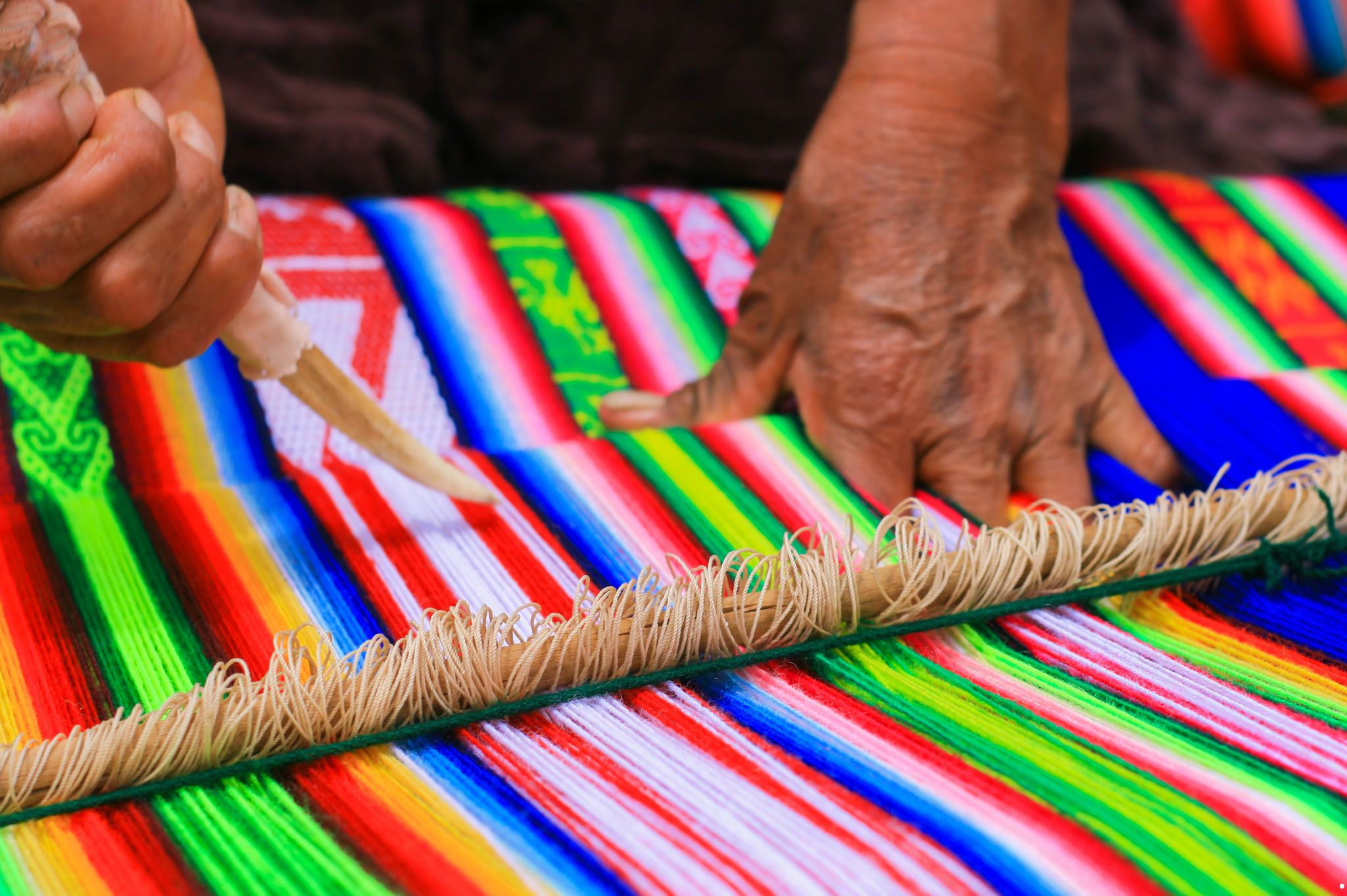 - Tkactwo odbywa się na tradycyjnych krosnach — często poziomych lub na palikach — i jest dziedziczone pokoleniowo.