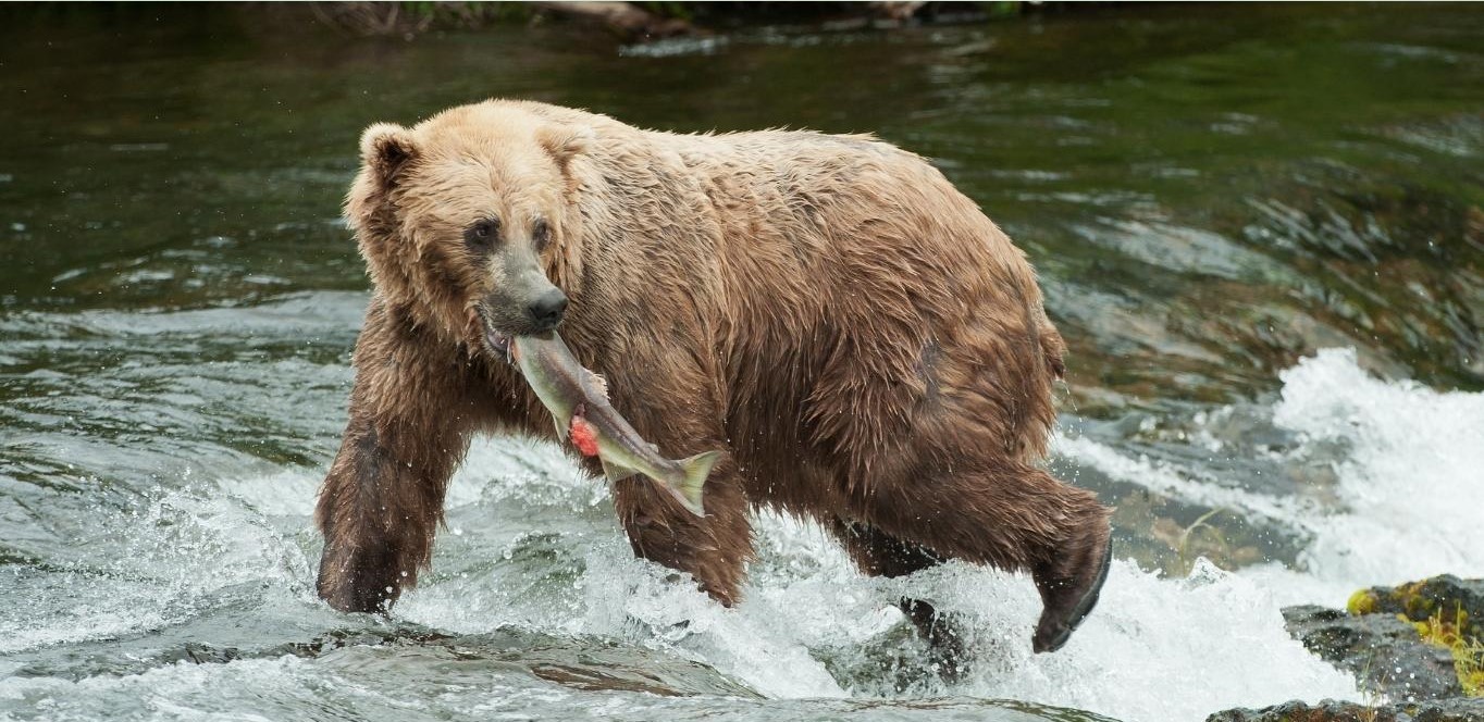Dla niedźwiedzi brunatnych (grizzly) sezon migracji łososia to kluczowy moment w roku. Ryby są bogate w tłuszcz i białko, niezbędne do zgromadzenia zapasów energetycznych przed zimową hibernacją. Jeden dorosły niedźwiedź potrafi zjeść nawet kilkadziesiąt łososi dziennie.