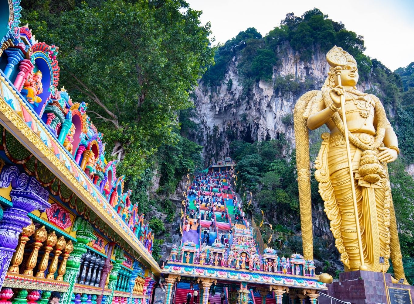 Zaledwie kilkanaście kilometrów od Kuala Lumpur znajduje się jedno z najbardziej niezwykłych miejsc Azji – kompleks jaskiń wapiennych Batu Caves, ozdobionych hinduistycznymi świątyniami. Prowadzi do nich ponad 270 kolorowych schodów, a u ich podnóża wita turystów ogromny, 42-metrowy posąg boga Murugana.