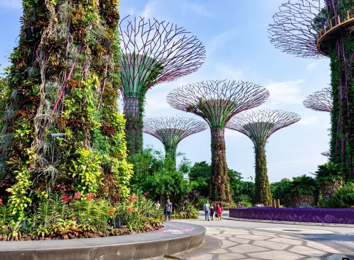 Gardens by the Bay – futurystyczne ogrody z gigantycznymi „drzewami” Supertrees i szklarniami Cloud Forest oraz Flower Dome.
