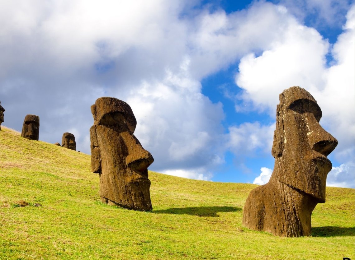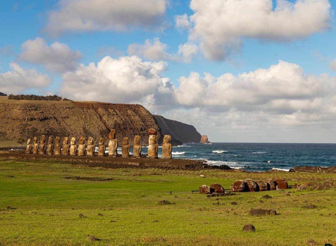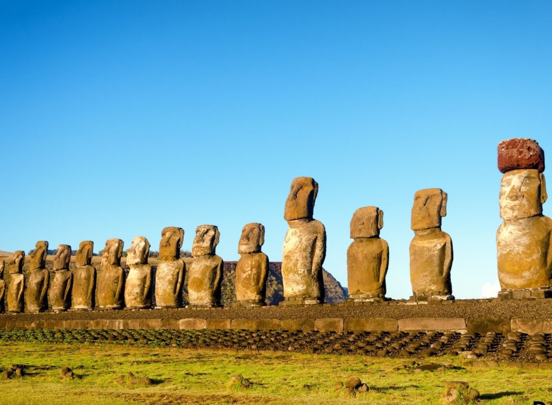 Kolejny dzień zwiedzania wyspy. Wyjazd do stanowisk ahu – kamiennych platform, na których wznoszono olbrzymie posągi (moai). Przejazd pod stanowisko Tongariki, gdzie ustawiono najwięcej moai. Następnie podjedziemy pod wygasły wulkan Rano Raraku i dojdziemy do miejsca, gdzie w kamieniołomach wykuwano moai, które stąd „wędrowały” na setki ahu rozmieszczonych na całej wyspie. Spacer po zboczach wulkanu. Podziwianie wielu posągów, w tym największego, nigdy nieukończonego. Postój na Anakena, jedynej piaszczystej plaży wyspy. Zachowując ostrożność, można tutaj wykąpać się w oceanie. Nocleg w hotelu w Hanga Roa.