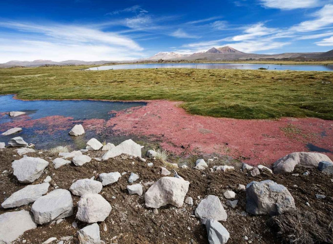 Wycieczka w wysokie Andy spektakularną trasą w głąb wysokogórskiego altiplano. Już pierwsze kilometry pokazują, jak szybko zmienia się krajobraz – pustynne doliny ustępują miejsca szerokim, otwartym przestrzeniom, a na horyzoncie pojawiają się stożki wulkanów. Droga stopniowo wznosi się i prowadzi nas powyżej 4 000 m n.p.m. Po drodze przewidziane są krótkie przystanki widokowe – m.in. na wulkan Licancabur. Piknik w plenerze – kawa, herbata i lokalne przekąski spożywane w ciszy, w otoczeniu gór i surowej przyrody. Dojazd do bofedal Quepiaco – są to wysokogórskie mokradła stanowiące oazę życia pośród pustyni. W zależności od pory roku można tu zobaczyć ptaki andyjskie i pasące się wikunie. Kontrast zielonych traw z czerwonymi i brązowymi zboczami gór jest niezwykle fotogeniczny. Następnie trasa prowadzi w stronę rozległych solnisk – Salar de Aguas Calientes i Salar de Quisquiro. Białe połacie soli, turkusowe laguny i intensywne kolory minerałów tworzą pejzaż przypominający powierzchnię Marsa. Na tej wysokości nasze samopoczucie może się pogorszyć i wtedy zaczniemy wracać do położonego niżej San Pedro. Jeśli będziemy się czuć dobrze, to spróbujemy dojechać aż w rejon kaldery Pacana na wysokość około 4 500 m n.p.m. W pobliżu znajdują się również charakterystyczne formacje skalne zwane „Monjes de la Pacana” lub „Guardianes”, czyli pionowe filary wyrastające z pustynnej równiny. Uwaga: wycieczka zakłada przebywanie na dużych wysokościach i nie powinny brać w niej udziału osoby z problemami związanymi z układem krążenia. Nocleg w San Pedro.