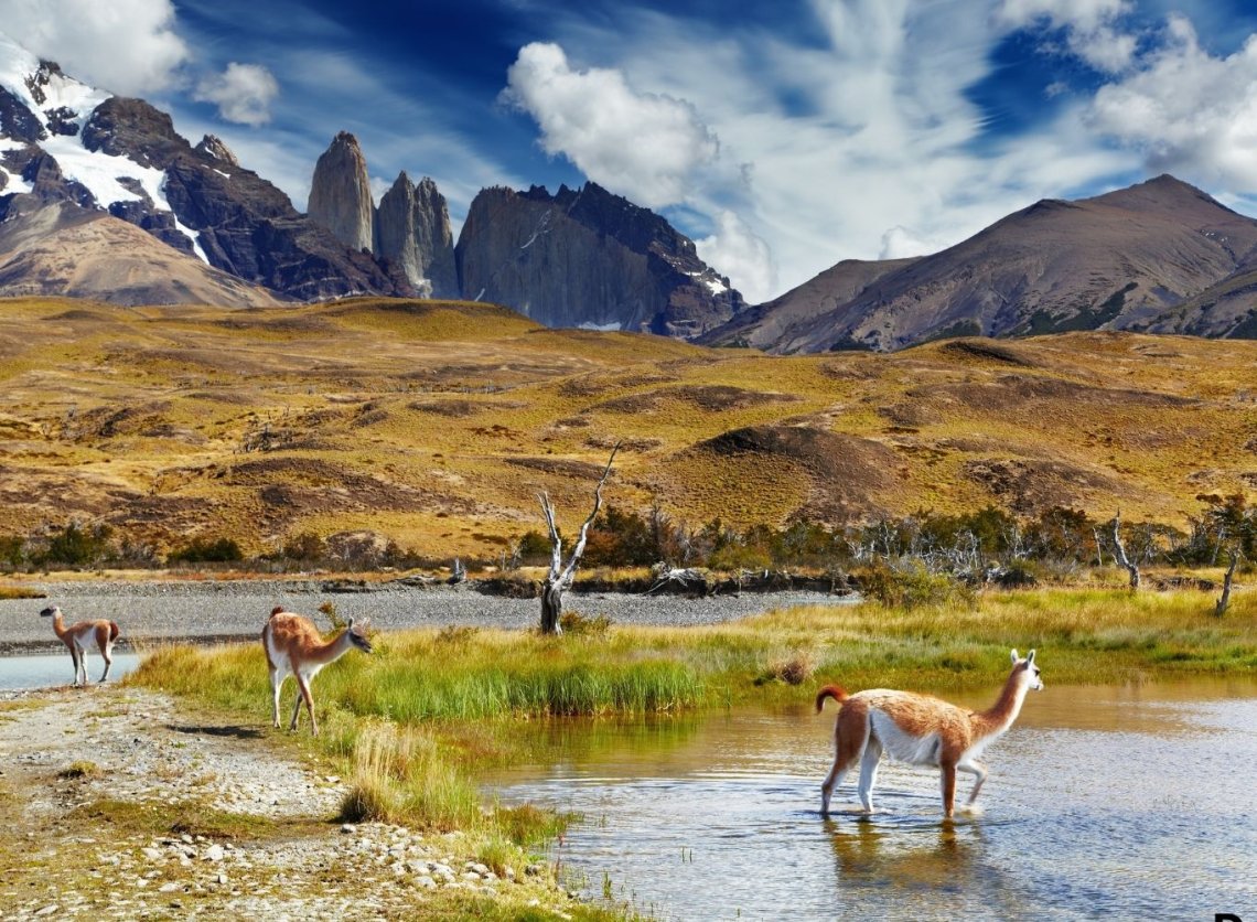 Pobyt w Torres del Paine. Zwiedzanie najpiękniejszych miejsc w parku. Spacery, podziwianie krajobrazów z punktów widokowych. Skalne wieże, jeziora, wodospady, lodowce, dzikie zwierzęta z często spotykanym guanako – to wszystko tworzy kwintesencję Patagonii. W Patagonii często wieją silne wiatry, zatem musimy być dobrze przygotowani na każdą pogodę. Sceneria jest niesamowita niezależnie od pogody, ale gdy dopisze szczęście i skalne iglice oświetli słońce, widoki są nieziemskie. Jedziemy nad jezioro Pehoe, podziwiamy wodospad Salto Grande i mnóstwo innych ciekawych miejsc. W tym dniu namawiamy też wszystkich na krótkie trekkingi po Torres del Paine. Powrót na nocleg.