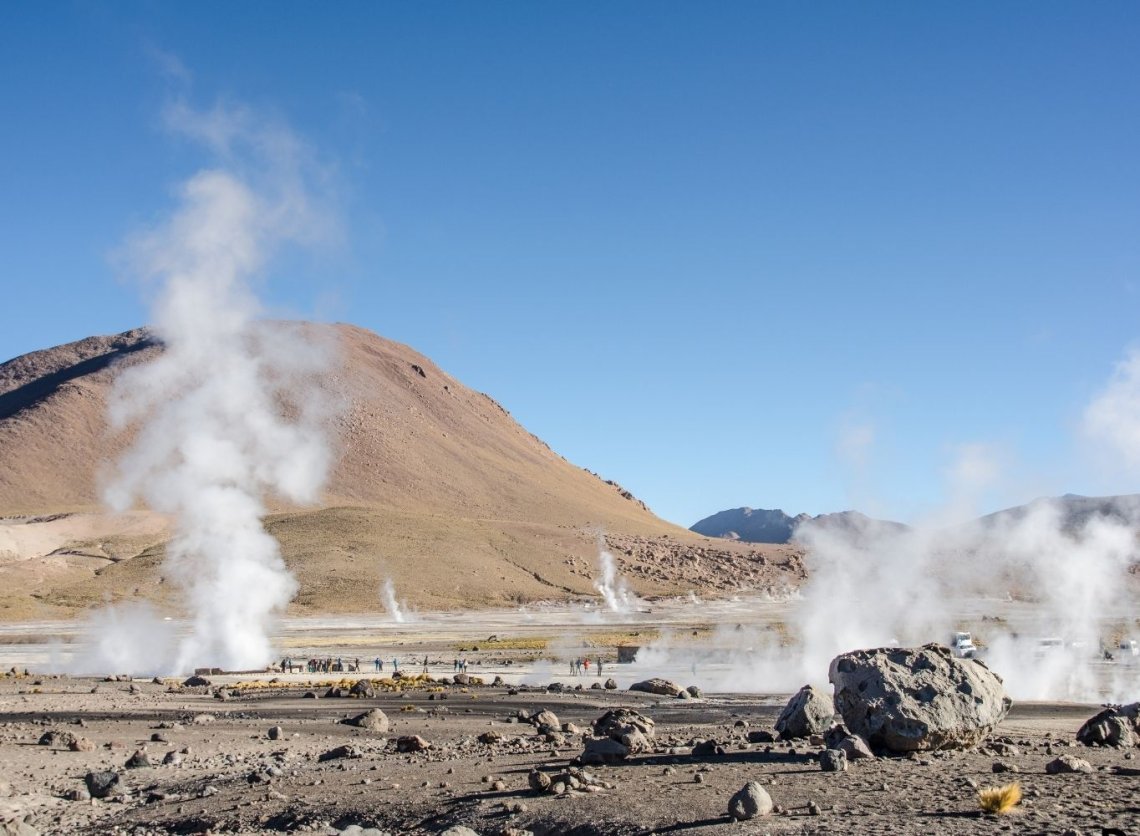 Przed świtem wyjazd do położonych wysoko w Andach gejzerów. Droga biegnie coraz wyżej przez suche zbocza Andów. Gejzery Tatio leżą na wysokości ponad 4 000 m n.p.m., wokół rozciągają się andyjskie szczyty. Gejzery uaktywniają się tylko wcześnie rano, mieniąc się kolorami. Kąpiel nieopodal gejzerów w jeziorku zasilanym gorącymi źródłami. Podczas zjazdu w doliny mijanie wielkich kaktusów kandelabrowych, szansa na zdjęcia alpak i guanako. Po południu odpoczynek i czas wolny w San Pedro.