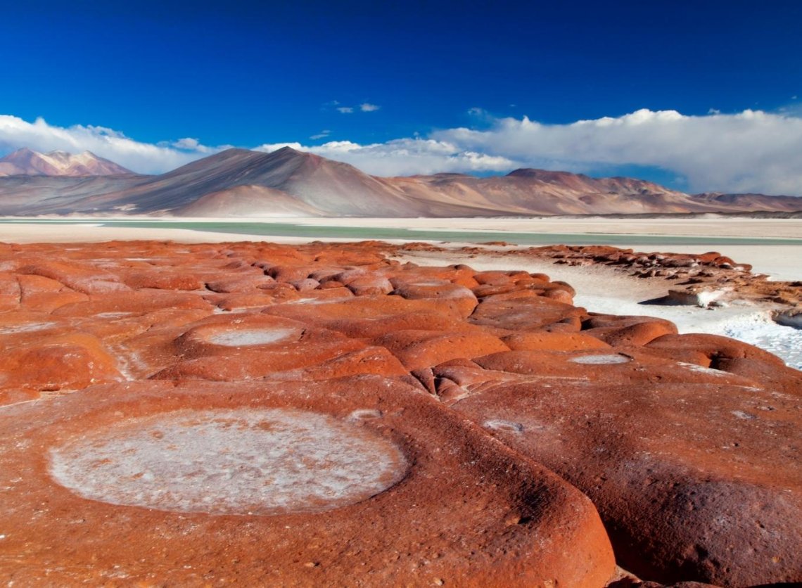 Wycieczka w wysokie Andy spektakularną trasą w głąb wysokogórskiego altiplano. Już pierwsze kilometry pokazują, jak szybko zmienia się krajobraz – pustynne doliny ustępują miejsca szerokim, otwartym przestrzeniom, a na horyzoncie pojawiają się stożki wulkanów. Droga stopniowo wznosi się i prowadzi nas powyżej 4 000 m n.p.m. Po drodze przewidziane są krótkie przystanki widokowe – m.in. na wulkan Licancabur. Piknik w plenerze – kawa, herbata i lokalne przekąski spożywane w ciszy, w otoczeniu gór i surowej przyrody. Dojazd do bofedal Quepiaco – są to wysokogórskie mokradła stanowiące oazę życia pośród pustyni. W zależności od pory roku można tu zobaczyć ptaki andyjskie i pasące się wikunie. Kontrast zielonych traw z czerwonymi i brązowymi zboczami gór jest niezwykle fotogeniczny. Następnie trasa prowadzi w stronę rozległych solnisk – Salar de Aguas Calientes i Salar de Quisquiro. Białe połacie soli, turkusowe laguny i intensywne kolory minerałów tworzą pejzaż przypominający powierzchnię Marsa. Na tej wysokości nasze samopoczucie może się pogorszyć i wtedy zaczniemy wracać do położonego niżej San Pedro. Jeśli będziemy się czuć dobrze, to spróbujemy dojechać aż w rejon kaldery Pacana na wysokość około 4 500 m n.p.m. W pobliżu znajdują się również charakterystyczne formacje skalne zwane „Monjes de la Pacana” lub „Guardianes”, czyli pionowe filary wyrastające z pustynnej równiny. Uwaga: wycieczka zakłada przebywanie na dużych wysokościach i nie powinny brać w niej udziału osoby z problemami związanymi z układem krążenia. Nocleg w San Pedro.