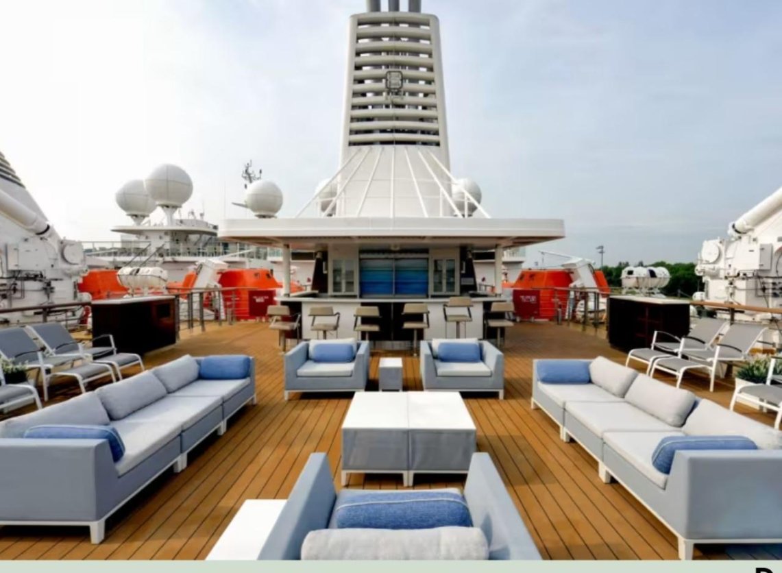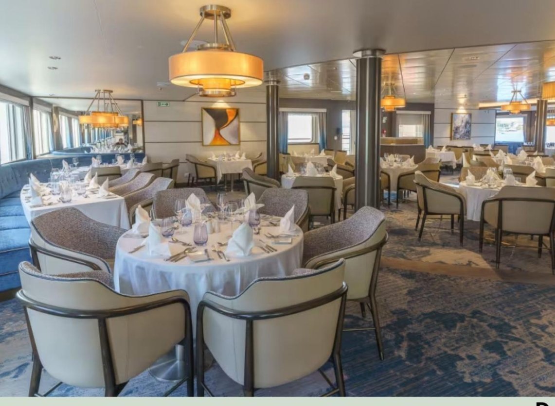 Przestronne kabiny charakteryzują się nowoczesnym, skandynawskim wystrojem wykonanym na zamówienie. Goście mogą zrelaksować się w siłowni, saunie z dużymi oknami oraz w dwóch zewnętrznych jacuzzi.