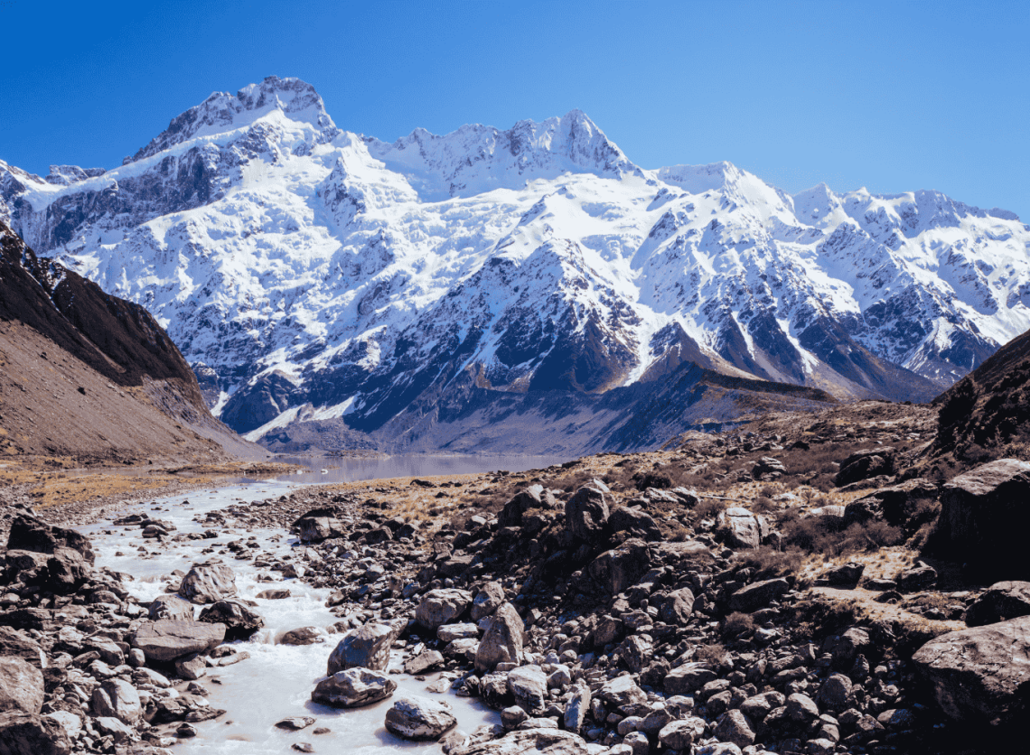 Po śniadaniu i poranku w Christchurch opuszczamy zamieszkane tereny i wjeżdżamy w górskie okolice. Podróż do Parku Narodowego Mt. Cook. Park ten jest częścią obszaru wpisanego na listę światowego dziedzictwa UNESCO. Trekking po parku narodowym. Łatwa ścieżka wyprowadzi nas do punktu widokowego nad lodowcem, skąd przy ładnej pogodzie doskonale widać Mt. Cook, najwyższy szczyt Alp. Podczas trekkingu mamy szansę zobaczyć jedyne w swoim rodzaju papugi kea. Nocleg w okolicy parku narodowego. [dystans drogowy dnia ok. 330 km]