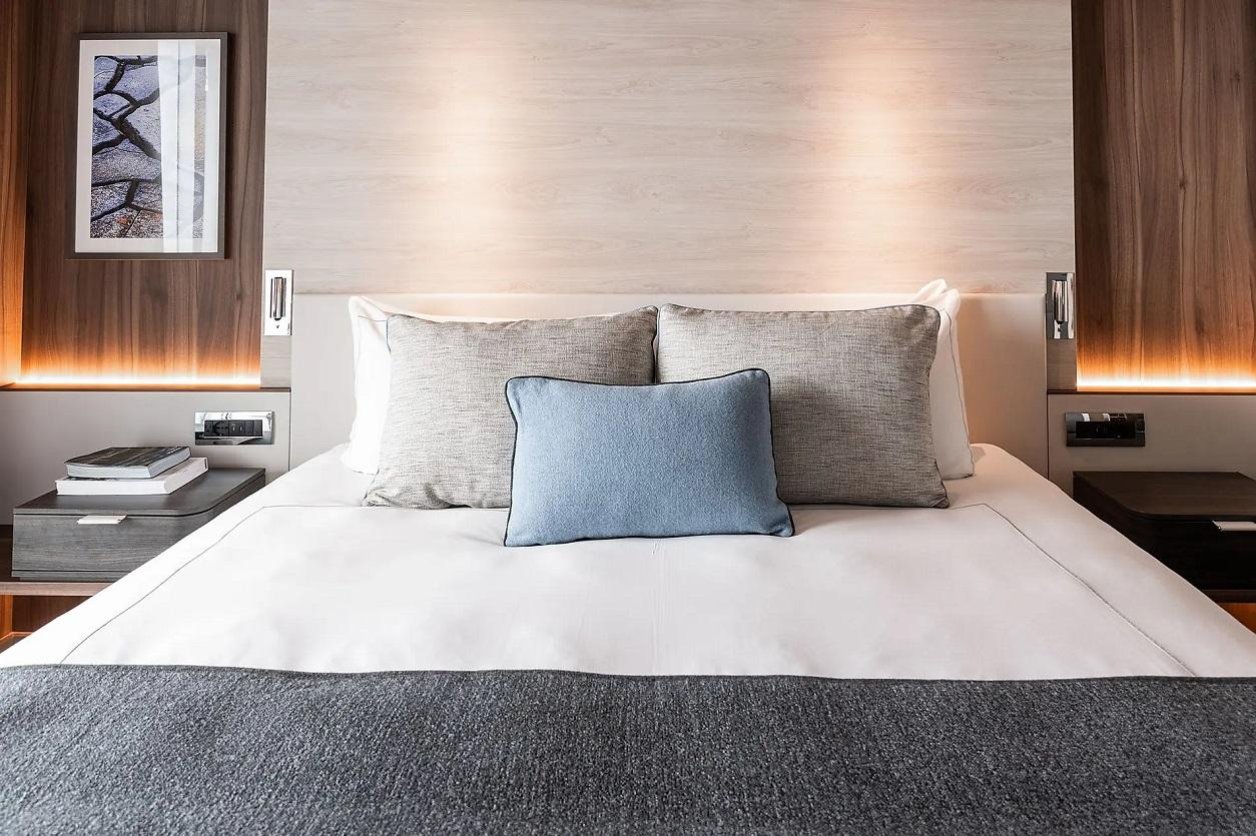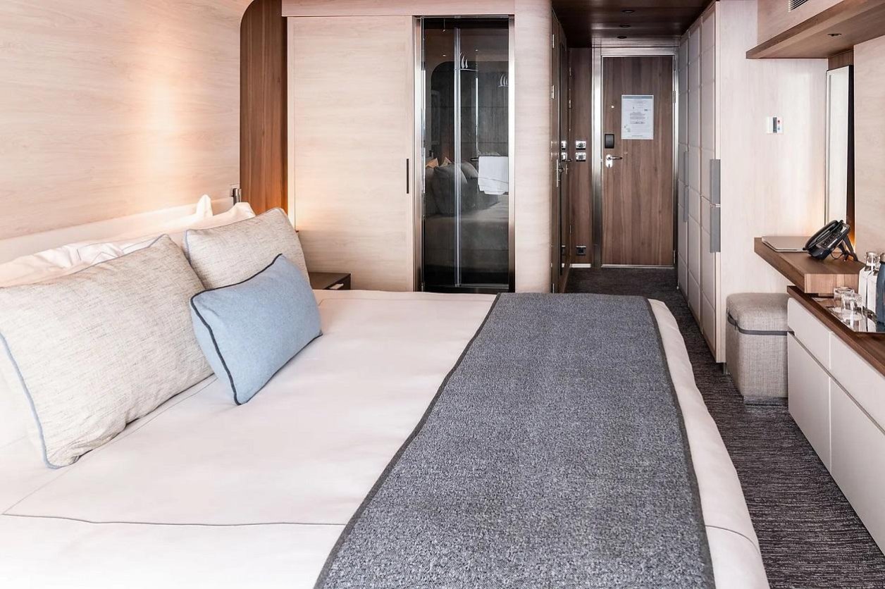 Kabina o powierzchni 20 m², posiada łazienkę z prysznicem, łóżko king size (180 x 200 cm) lub dwa łóżka pojedyncze (90 x 200 cm). Do dyspozycji gości jest również przeszklony balkon o powierzchni 5 m², a przez panoramiczne okno przesuwne można podziwiać widoki.