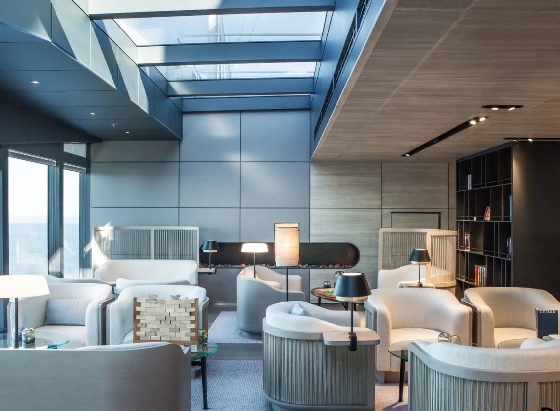 Le Commandant Charcot zabierze nas w podróż śladami wielkich polarników w niezwykłym otoczeniu, wraz z luksusowymi usługami. Kryty basen, oranżeria, restauracja panoramiczna, restauracja na świeżym powietrzu Blue Lagoon, salon główny, salon obserwacyjny, lobby… Każda część wspólna została zaprojektowana tak, aby zarówno zapewniać dyskretny luksus we francuskim stylu, jak i budzić zachwyt i zdumienie . Wspólnym wątkiem jest chęć umożliwienia przenikania światła i odsłonięcia niezwykłych polarnych krajobrazów i scenerii.