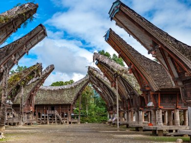 Przejazd na lotnisko. Wylot z Makassar na niewielkie lotnisko w środkowej części Sulawesi. Dzięki temu znacznie skrócimy czas podróży i nie będziemy pokonywać dwa razy tej samej drogi. Przejazd na terytorium Toradżów, mieszkańców górskich rejonów, którym udało się zachować czasem szokujące dla nas tradycje i obrzędy. Zwiedzanie wiosek z niezwykłymi domami w kształcie łodzi, oglądanie grobowców i figur tau-tau, wyobrażeń zmarłych, ustawianych przed miejscami pochówku oraz jaskiń, w których Toradżowie chowają swoich bliskich lub umieszczają ciała zmarłych w niszach wysoko pod stropem skalnym. Szokujący jest zwyczaj pochówku małych dzieci w drzewach. Sulawesi jest piękną wyspą. W połączeniu z wyjątkowymi zwyczajami jej mieszkańców sprawia, że ta część wyprawy do Indonezji jest bardzo ciekawa. Nocleg w hotelu w Rantepao.