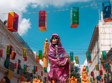 Okazja do udziału w barwnych obchodach Dia de Muertos. Będziemy mieli niepowtarzalną okazję uczestnictwa w paradach i niezwykłych obchodach tego święta wraz z Meksykanami i wspólnej hucznej fiesty. Planujemy też degustację słynnych meksykańskich trunków – będzie to oczywiście tequila lub mezcal. Jesteśmy też na Tlatelolco – Placu Trzech Kultur, w miejscu szczególnym w historii miasta. Tu, w XVI wieku, doszło do ostatniego i decydującego starcia konkwistadorów i Azteków. Kolejny nocleg w Mexico City.