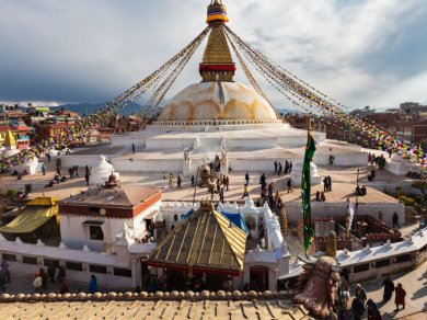 Przylot do stolicy Nepalu, Katmandu (1335 m n.p.m.), rozpoczynamy naszą wyprawę, przejazd do hotelu. Spacer po centrum starego Katmandu, Durbars Square – stare pagody i dawny pałac królewski. W tym miejscu mieszka też Kumari - ostatnia żywa bogini na świecie. Nocleg w Katmandu.