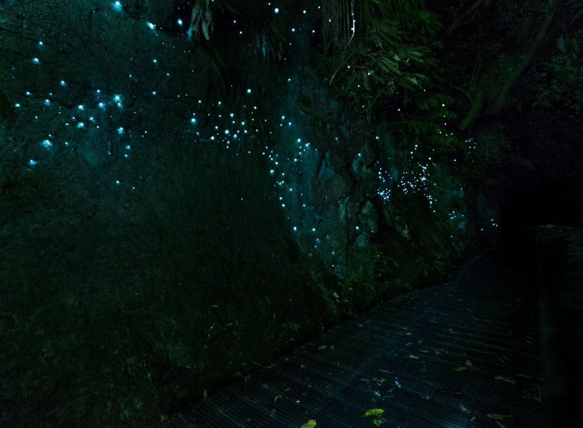 Jaskinie Waitomo – podziemne światło. Zwiedzamy rejon słynnych jaskiń Waitomo Glowworm Caves, gdzie czeka nas wyjątkowy rejs podziemną rzeką w łodzi wśród tysięcy świecących larw świetlików. Zjawisko to tworzy atmosferę niczym z bajki – całkowita cisza, ciemność i migoczące światło nad głowami przypominające gwieździste niebo.