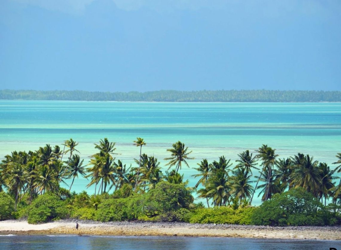 atol, którego szerokość w wielu miejscach wynosi zaledwie kilkadziesiąt metrów, a ocean i laguna są