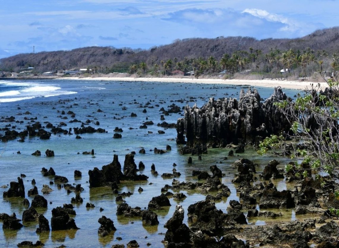 plaża i turkusowa woda kontrastują tu z charakterystycznymi wapiennymi skałami „pinnacles”, które